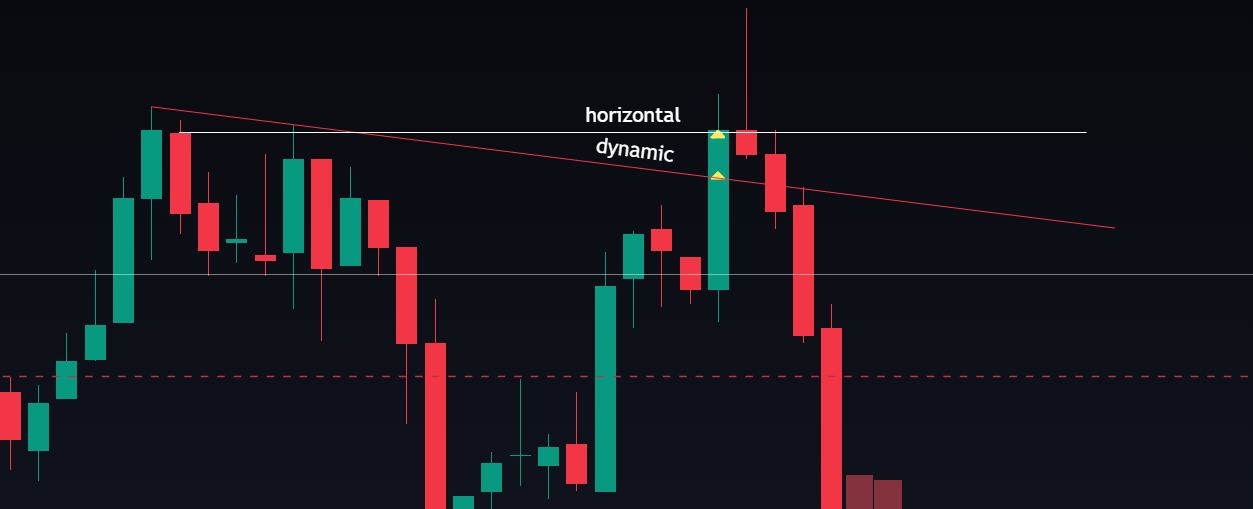 There is a breakout of both the dynamic and horizontal lines.